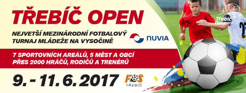 Třídenní sportovní svátek vypukne po celém Třebíčsku v pátek 9. června a bude trvat až do neděle 11. června. Do Třebíče přijede přes 1500 dětí ze všech koutů České republiky, objeví se také mladí hráči ze sousedního Slovenska, Polska a jako třešnička na dortu přiletí dvojnásobný vítěz Ligy Mistrů - Portugalský klub FC Porto. Třebíč Open 2017 organizuje klub SK Fotbalová škola Třebíč.