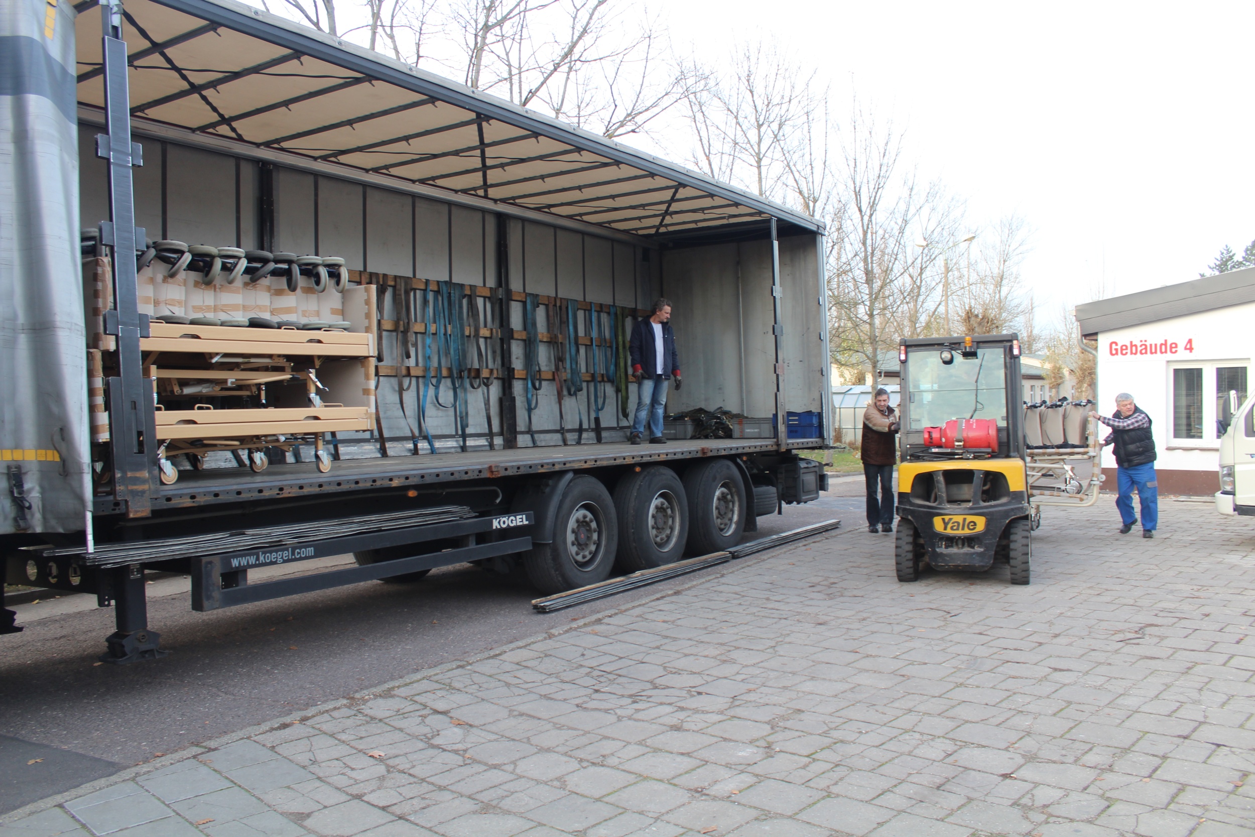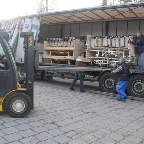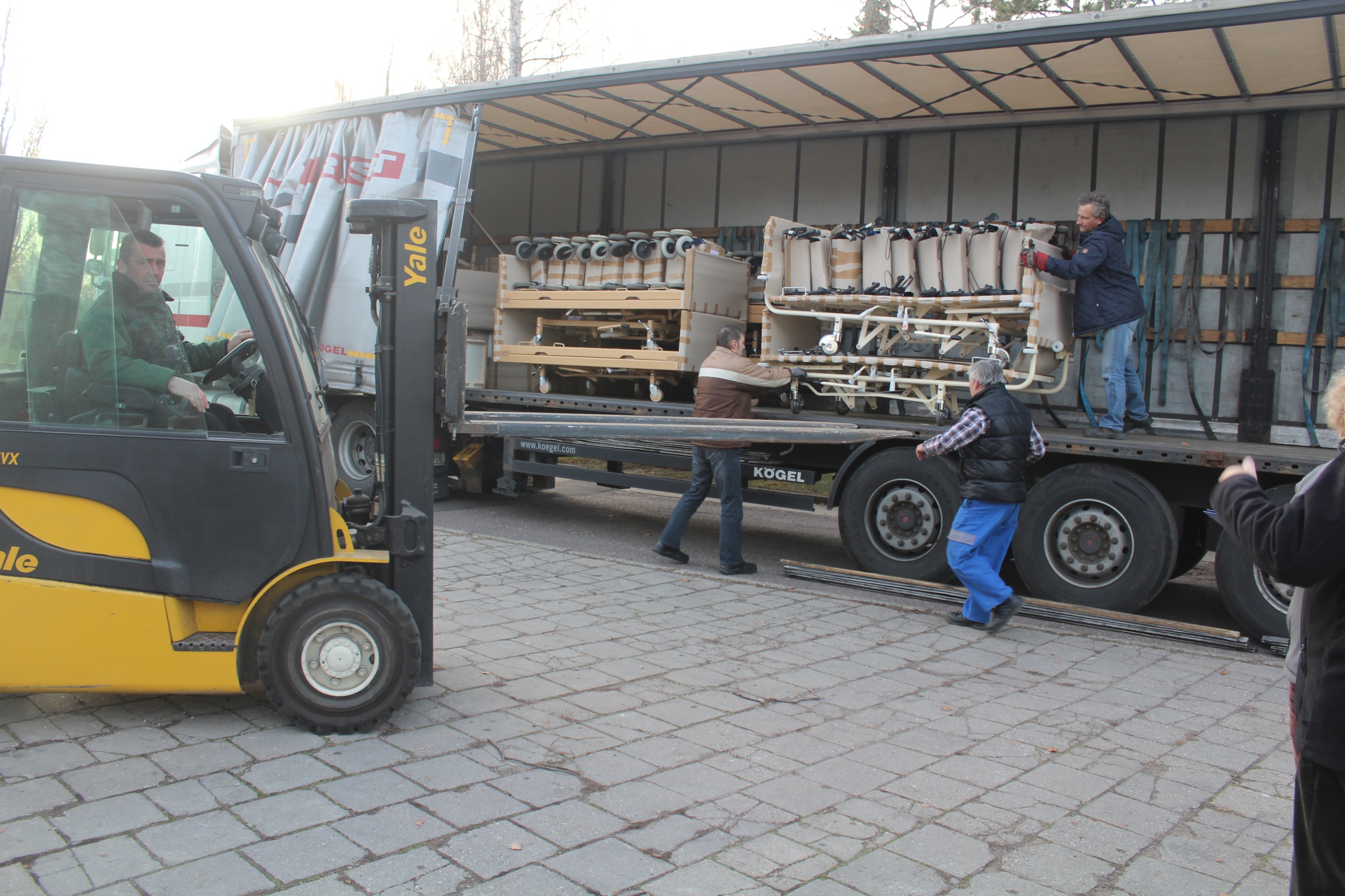 Kamion s vybavením lékařského a sesterského pokoje, polohovacími postelemi a dalšími zdravotnickými pomůckami vypravila Oblastní charita Třebíč z města Bitterfeld-Wolfen ze spolkové země Německo na konci listopadu